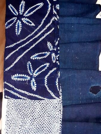 De Japanse Zijdewinkel heeft in haar voorraad enkele zeldzame stukken Japanse handgeverfde indigo katoenen lappen beschikbaar (nog niet zichtbaar in de webshop). De blauwe effen lap is 195x32cm en is een zachte, licht gerepareerd stuk katoen van gegarandeerd meer dan 100 jaar oud. Daarnaast hebben we een indigo Arimatsu shirbori katoen (195x16cm) van ongeveer 90 jaar oud en een Arimatsu sekka shibori katoen (210x17cm) van ongeveer 90 jaar oud.