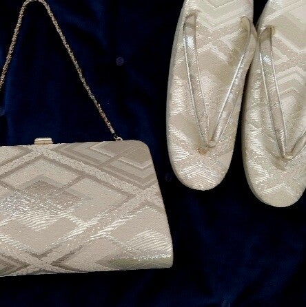 Zilverkleurige zori en handtas set Japanse zijde nieuw