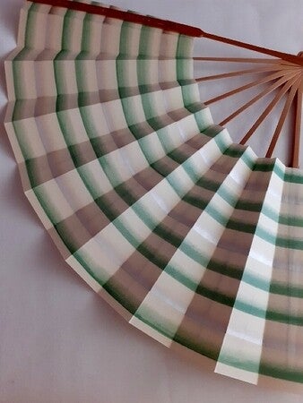 Grote antieke waaier met rustige streeppatroon. Antiek goede staat. Bamboe, Japans papier.