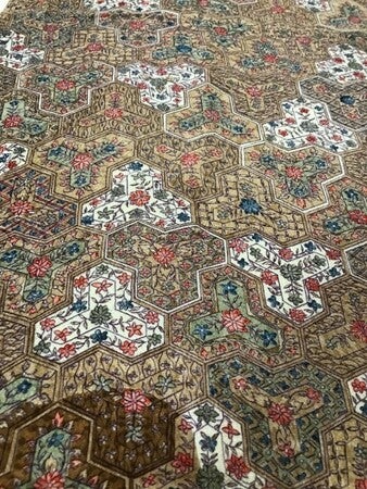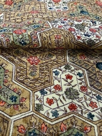 Soepele vintage zijde (1960) in mooie in elkaar overlopende kleuren beige en bruintinten geschikt voor patchwork, quilt, maison, kleding.