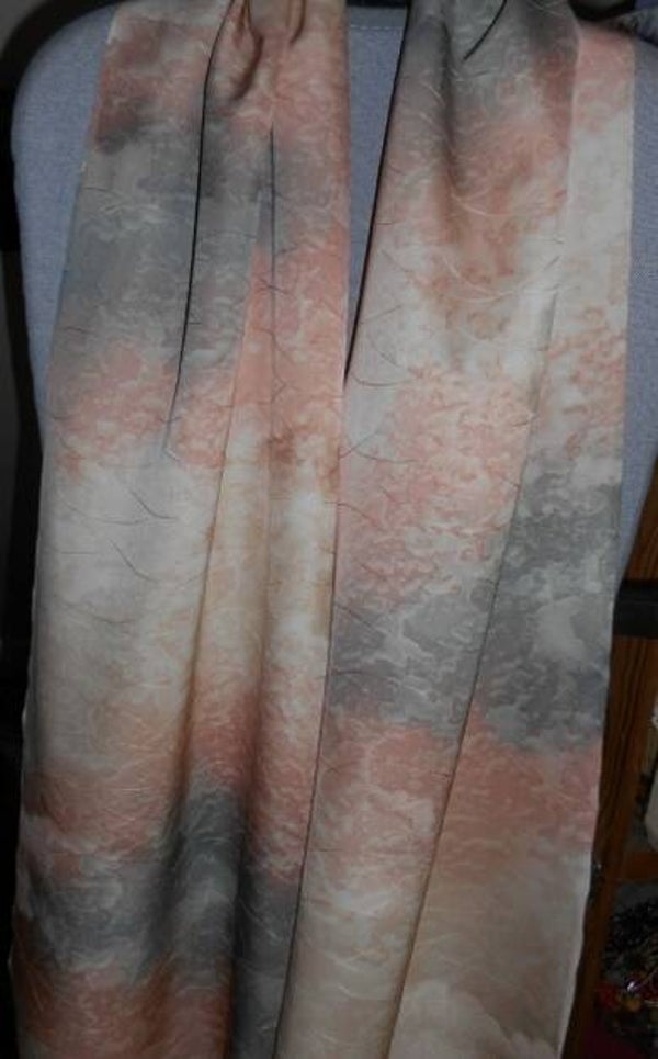 Kimonozijde mooi ingeweven zalm/creme/rookblauw 160x37cm