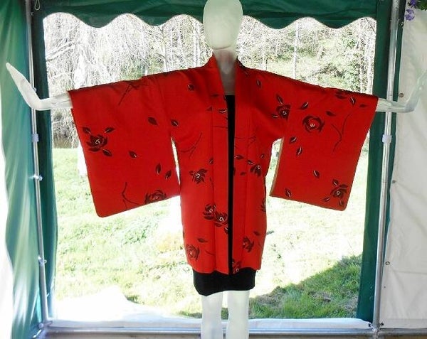 Haori kimonojasje brandweerrood met de hand bedrukt