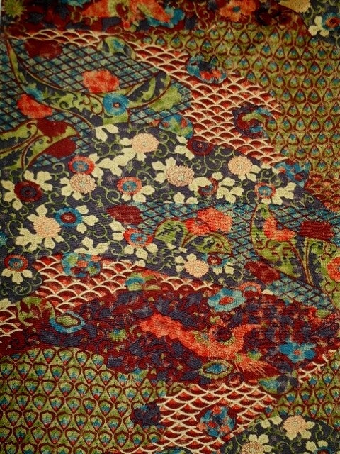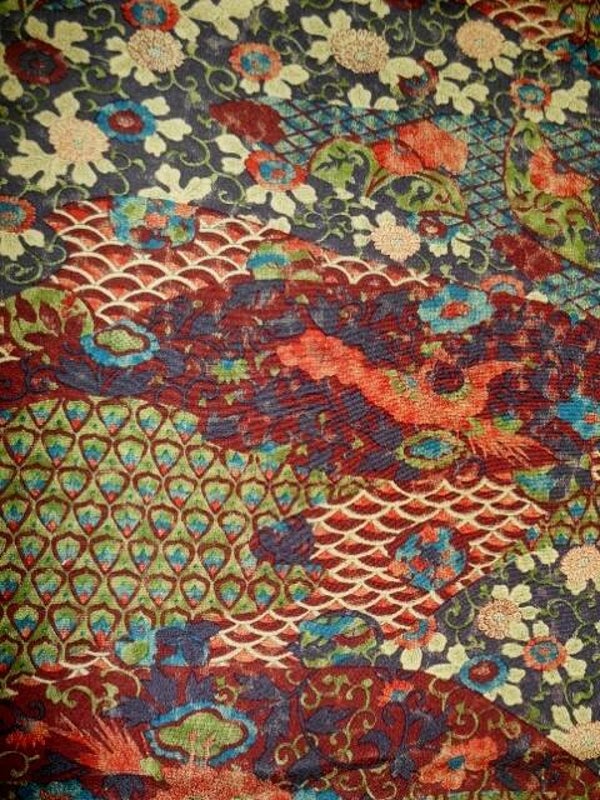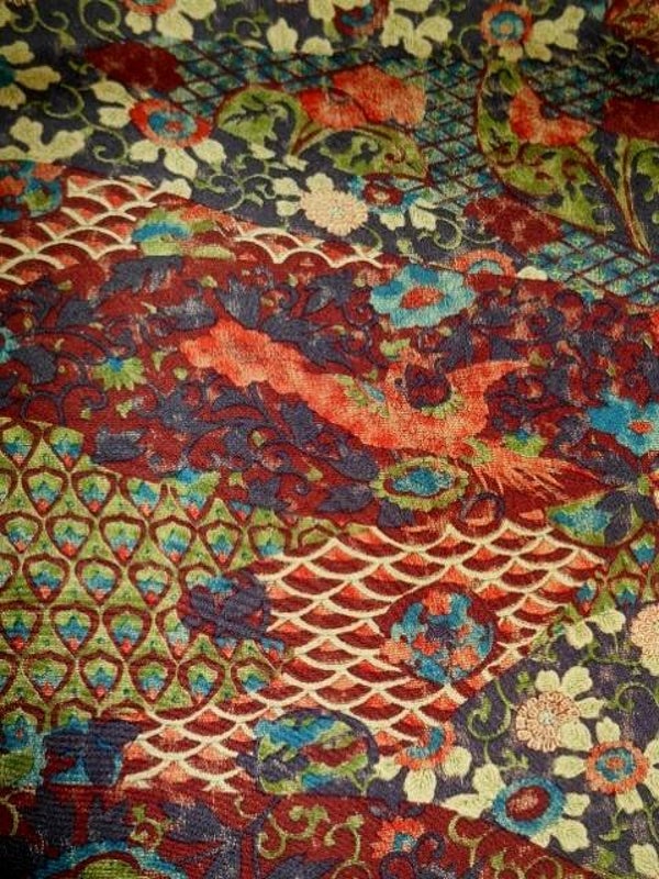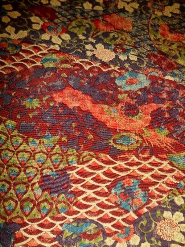Heel mooie oude zijde met natuurlijke kleuren en veel motieven