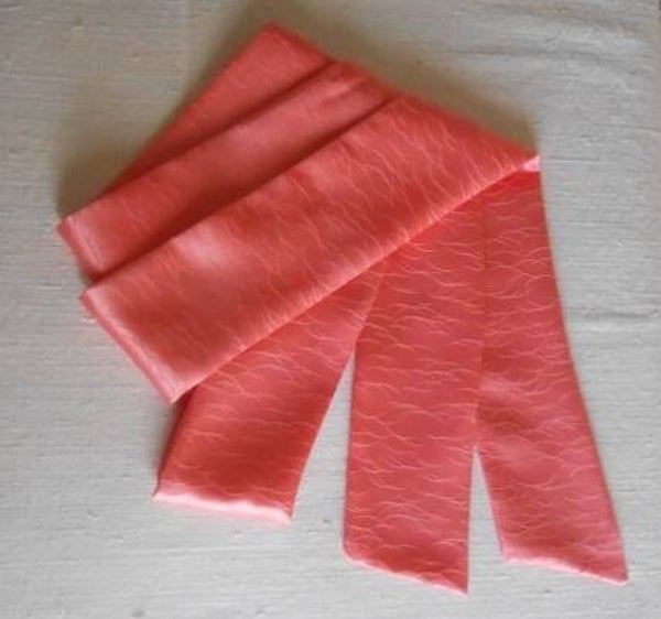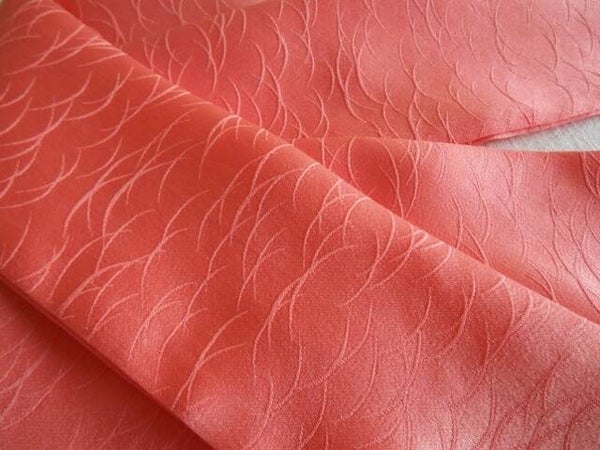 Prachtige diepe, maar zachtroze sjerp, ceintuur of smalle sjaal met een prachtig ingeweven patroon. Gemaakt van vintage kimonozijde (1950-60). Heerlijk zachte en een mooie glans.