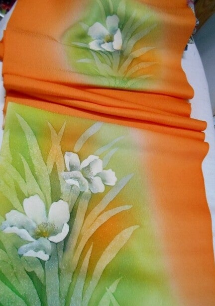 Kimonozijde v.a. 120 tot 180x37cm handgeverfd door kunstenaar