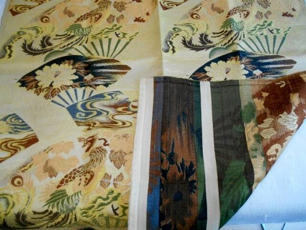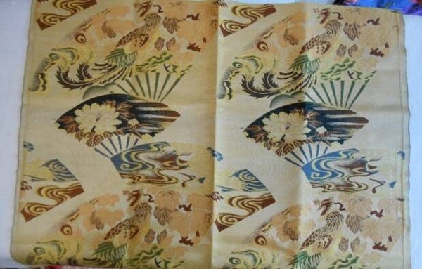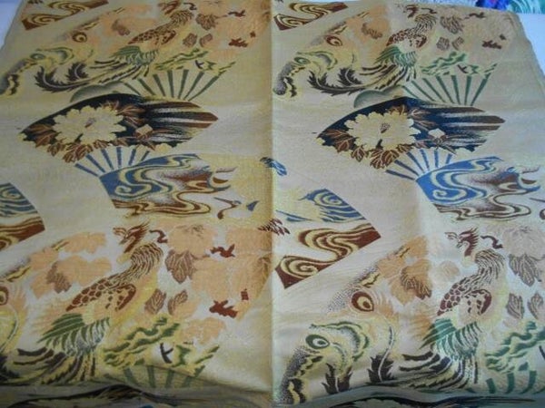 Maru (geisha) obizijde goudbrokaat 67x63cm 'vogel'