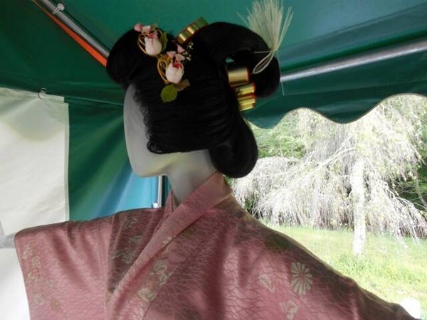 Set schitterende handgemaakte haarstekers met tulpen van chirimen zijde. Dit set bestaat uit 2 spelden van gelijke grootte.Met de hand gemaakt in Japan omstreeks 1960