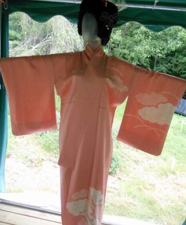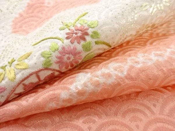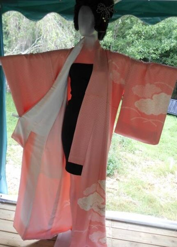 Deze prachtige vintage (1960) kimono is nog helemaal nieuw en ongedragen. De wat dikkere zijde zelf is ingeweven met het seigaiha motief. Erg mooi en uniek handgemaakt in Japan.