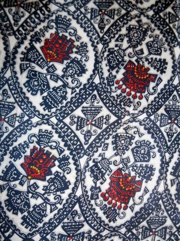 Antieke coupons zijde, zwart op creme ondergrond. Het is een oud Japans patroon in een soort madaillon motief.