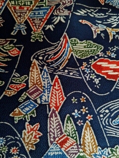 Deze zeldzame indigo natuurlijk gekleurde zijde is zeer geschikt voor patchwork en quiltprojecten. De zijde is handbedukt en van rond 1950