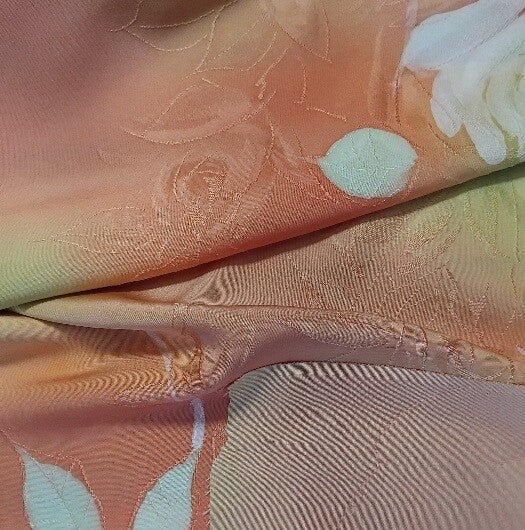 Vloeiende zijde geschikt voor bijvoorbeeld een sjaal of een blouse. Deze zijde heeft aan 2 kanten zelfkant en is aan 2 kanten bruikbaar.Coupon 155x36cm