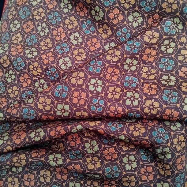 Deze antiek/vintage coupon zijde heeft een prachtig patroon met verschillende natuurlijk bedrukte bloemen.