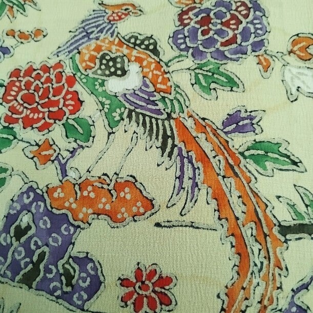 De handbedrukte levendige kleuren zijn zeldzaam te vinden.