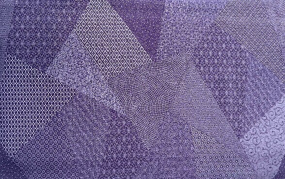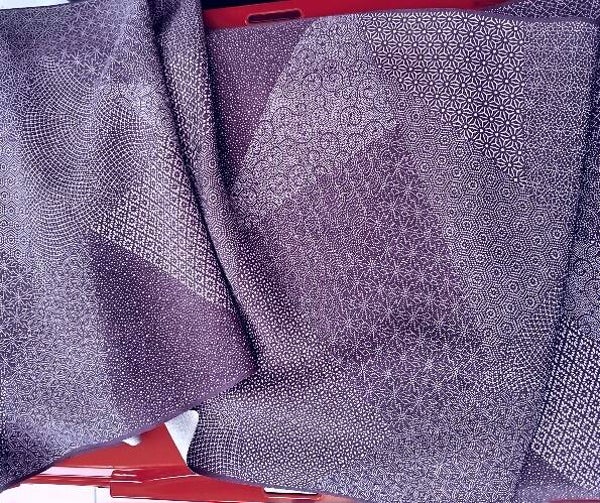 Unieke coupon handbedrukte zijde met veel verschillende fuguurtjes. Coupon 40x36cm voor langere coupon kies meer stuks