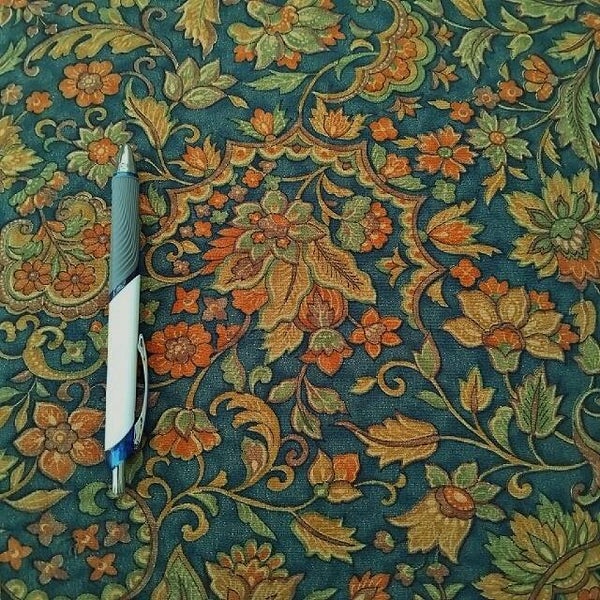 Het patroon heeft grote bloemen en bladeren en is aan twee kanten gekleurd. Erg mooi voor bijv. een blouse of voor patchwork en quilt.