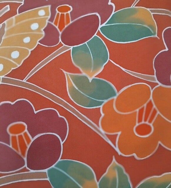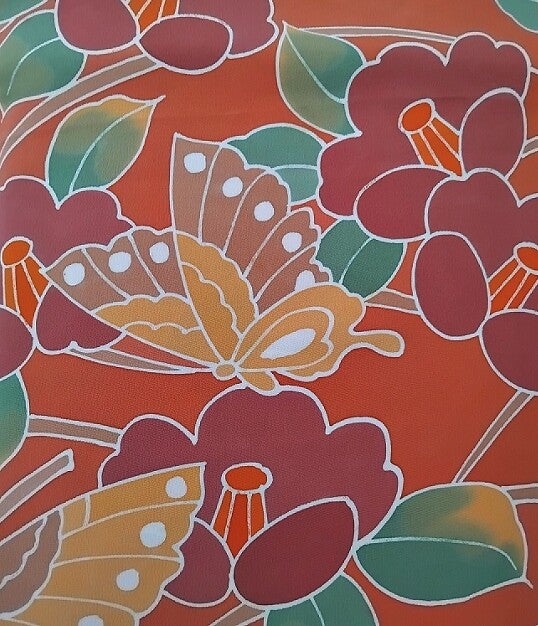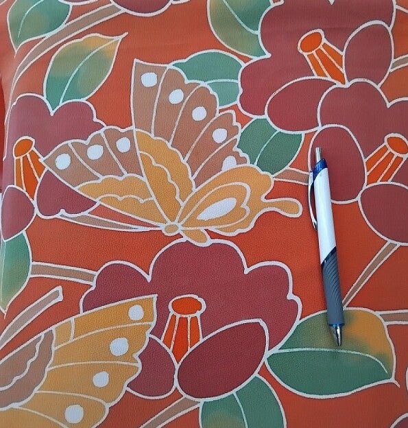 Vintage kimonozijde prachtige soepele en steviger kwaliteit.Aan 2 kanten gekleurd. Geschikt voor afwerken kleding, sjaal, maison, etc.Laatste coupon van 160x36cm