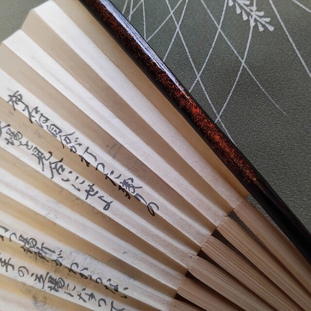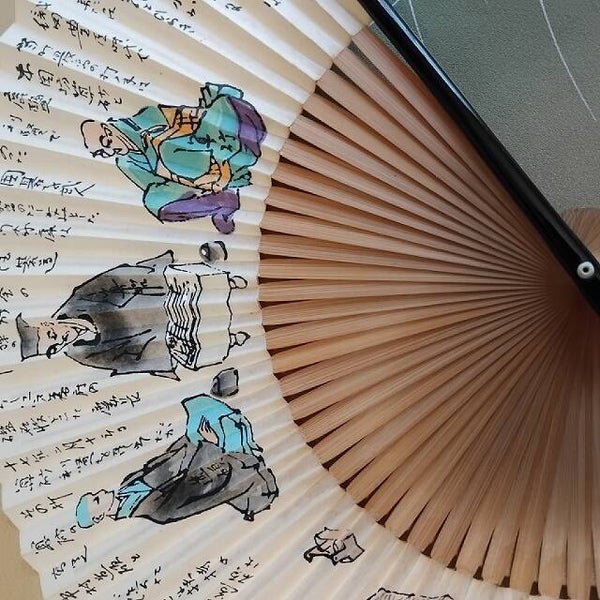 Grote antieke waaier met Japanse mannenAntiek goede staat. Bamboe, Japans papier.