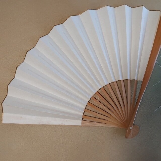 Antieke/vintage blanco waaier met bovenin een subtiel goudrandje. Paulownia hout en Japans papier.