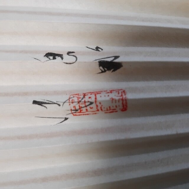 Aan de waaier is een zijden koordje bevestigd met een kraal.
