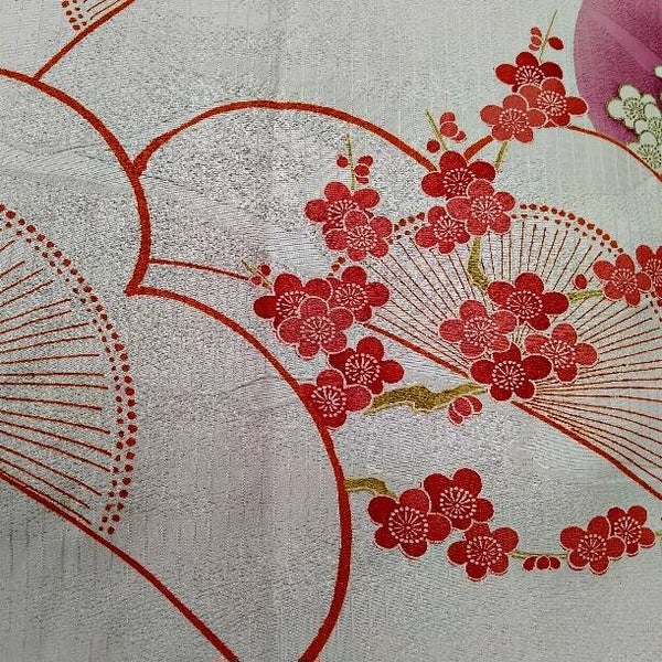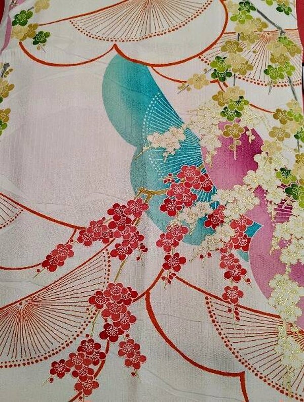 Antieke kimonozijde handgeschilderde bloesem met prachtige kleuren.