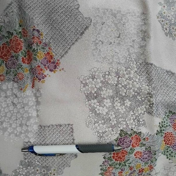 Antieke/vintage kimonozijde met subtiele glans.De kleur is creme en het motief heeft verschillende bloemenvakken. Coupon 40x36cmVoor langere coupon kies meer stuks