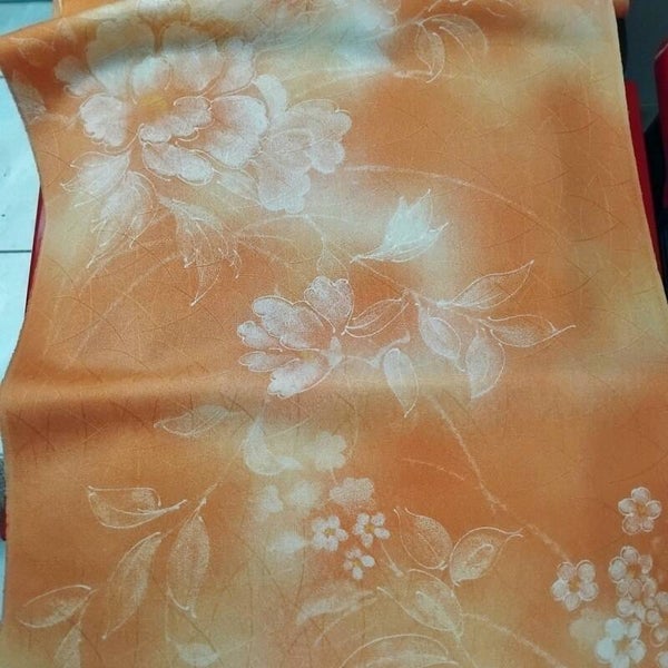 Prachtige antieke/vintage subtiel glanzende kimonozijde voor een prachtige sjaal of kleding bijvoorbeeld. De zijde is aan 2 kanten bruikbaar.