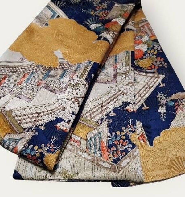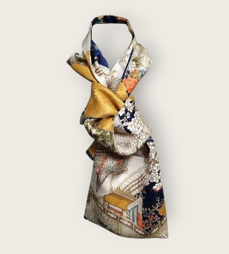 Sjaal antieke zijde ingeweven goudgarens 160x17cm