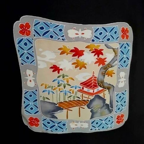 Dit subtiel glanzende natuurzijden jasje is met de handgemaakt door een kunstenaar en beschilderd met prachtige motieven. Het is het zogenaamde bord patroon, dat in Japan regelmatig is gebruikt.