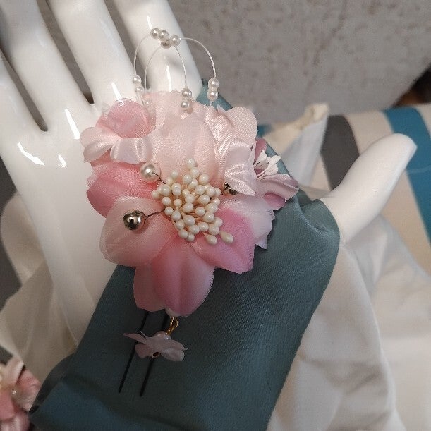 Schitterende handgemaakte geisha haarstekers uit boetiekje.Met prachtige rose bloemen en pareltjesMet de hand gemaakt in Japan 1960-90