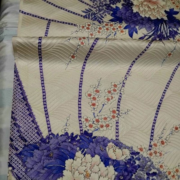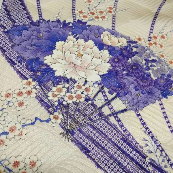 Zeer mooi geweven vintage (1950-60) zijde. De beschildering heeft goudrandjes.